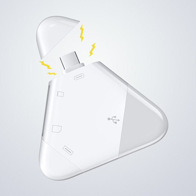 3-in-1 SD/TF Card Reader with USB, Type-C & Lightning Connectors, for SD & TF Cards