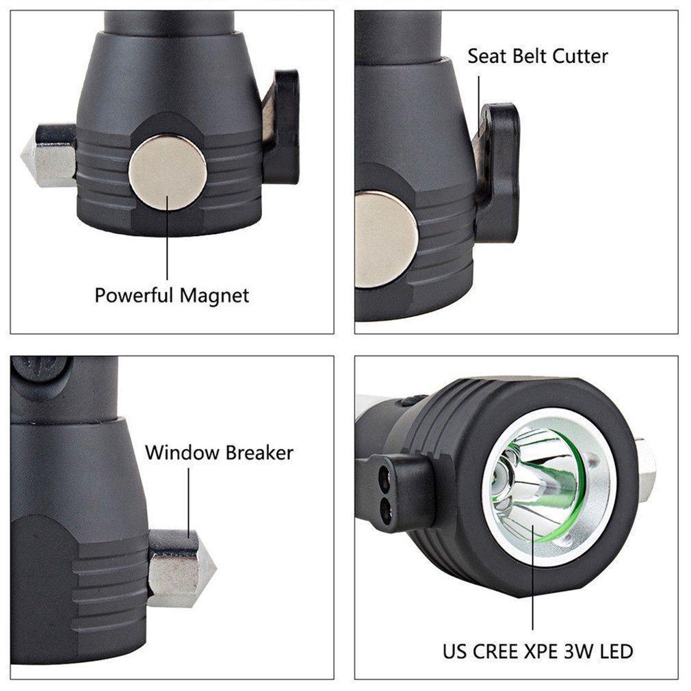 - It comes with a strong magnet so you can place the flashlight in your car for a hands-free work on the engine or while you change a tire, or to warn other vehicles of your presence with its warning red/blue light.