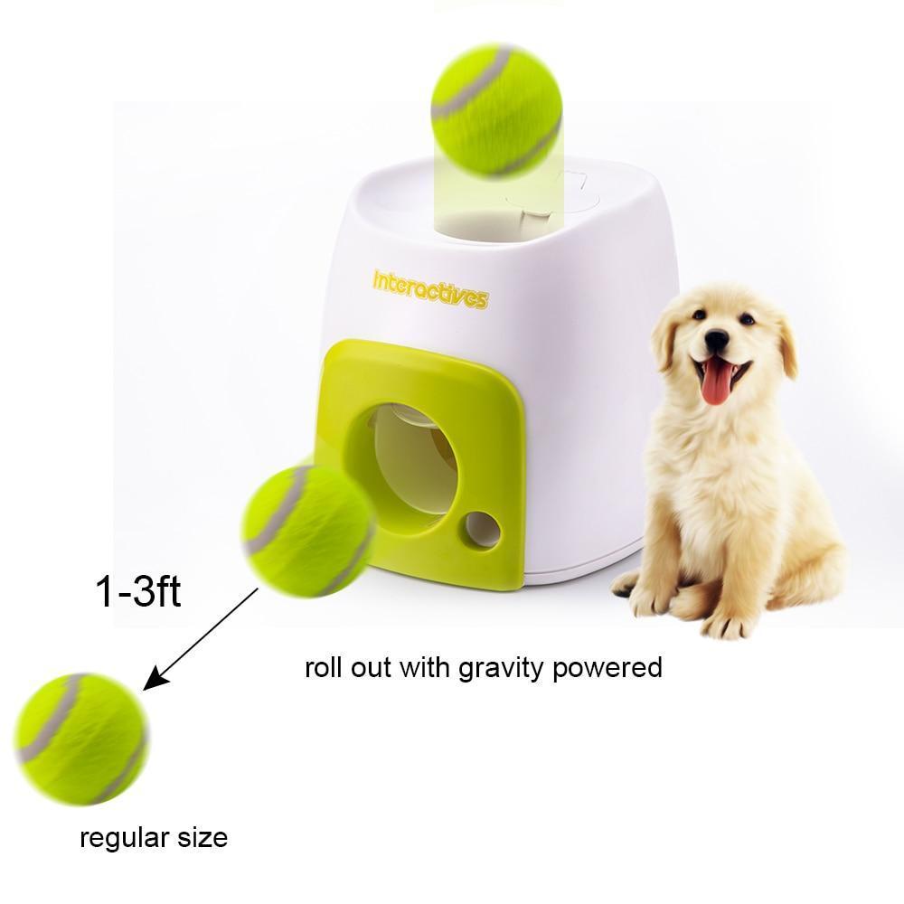 This dog fetch machine is an AC powered device that will automatically launch balls in your home or outside so your dog can chase them.