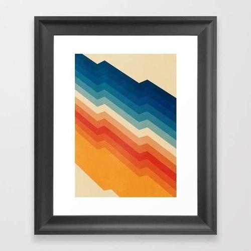 The Vector frame is made from solid wood with a contemporary, angular profile measuring 0.87" wide x 0.87" deep. A gesso coating gives the moulding rich color and a smooth finish. Premium shatterproof acrylic protects the art print, while an acid free dust cover on the back provides a custom finish. Includes wall hanging hardware