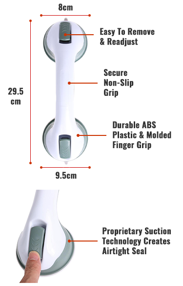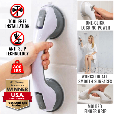 These bathroom grip support bars install in seconds, will never slip, and support people of all shapes and sizes.