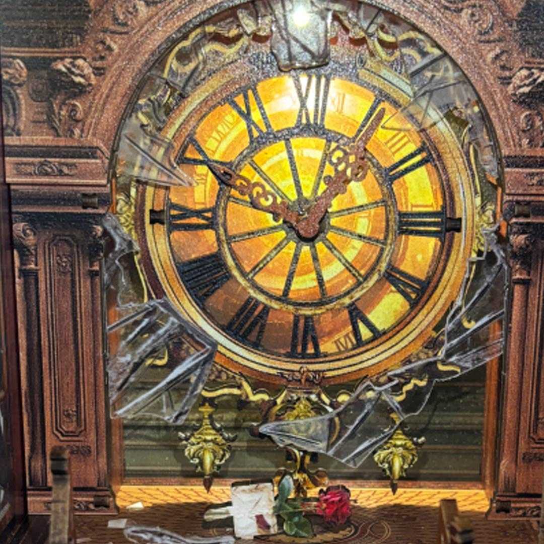 The Loft and Final Clues: The loft features a grand translucent clock and a solitary rose on the floor, providing a subtle yet poignant ending to the scene.