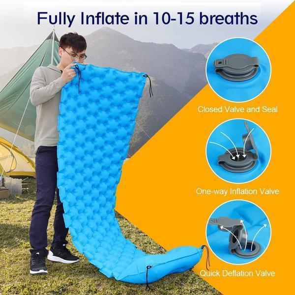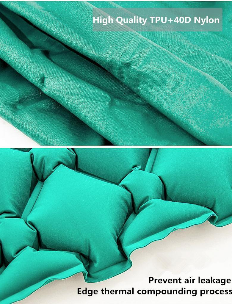 - Waterproof. You don’t want a soggy mattress ruining your time. Even if water gets into your tent, it won’t get into your mattress.