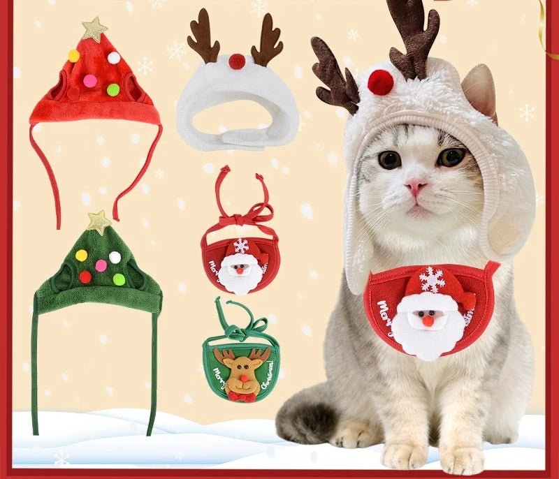 Christmas Hat & Bib Set for Pets – Festive Costume Accessories for Dogs and Cats