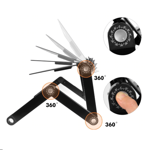 - Adjustable Leg: The legs can rotate 360 degrees and can be adjusted in different angles. It has 6 sturdy adjustable auto-locking joints can hold your computer very firm, and enables you to use your computer at the most pleasing position, benefits your health and makes you free from the neck ache and shoulder pain caused by poor posture.