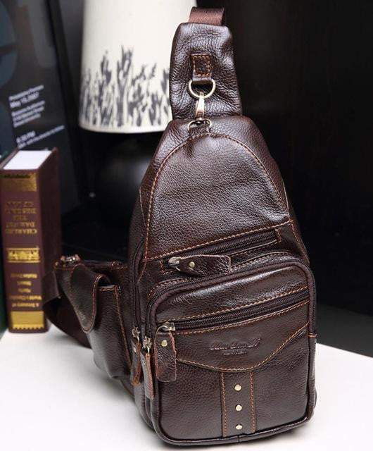 These Uniquely Designed Genuine Leather Chest Sling Back Pack With Rivets are are a touch of perfect class designed with premium Sophisticated high quality material!