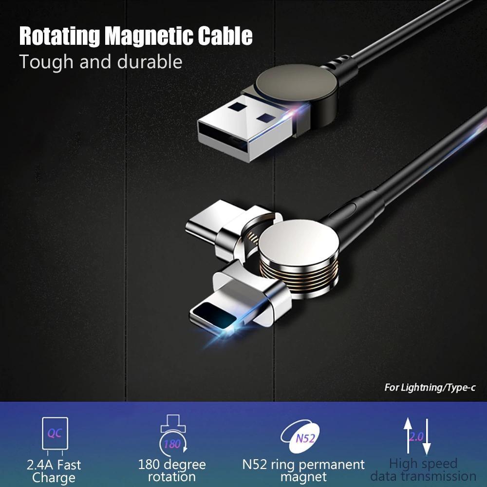 Magnetic Cable 180° Rotating Charging Cable For Android & IOS Fast Charge Sync Data Transmission