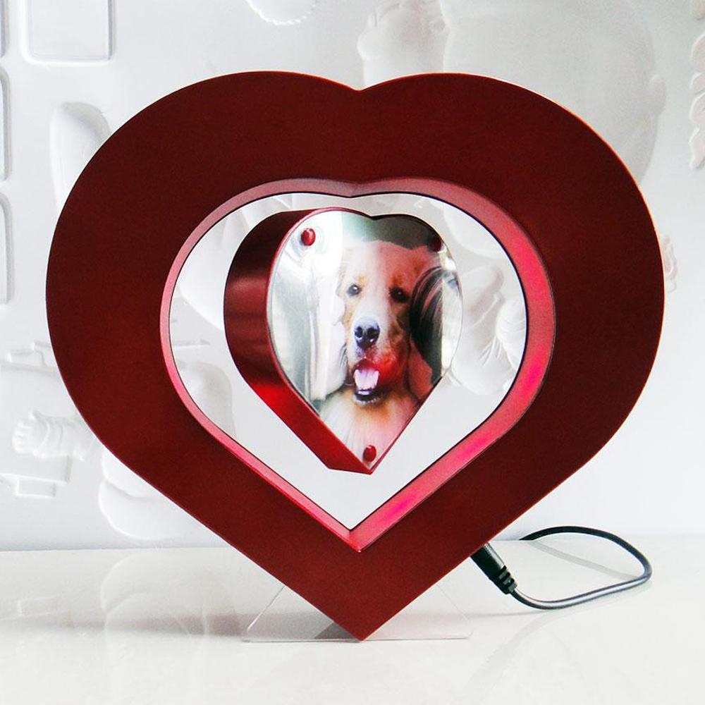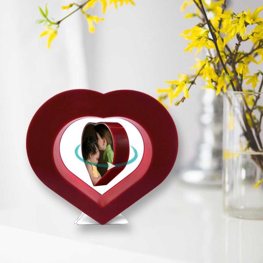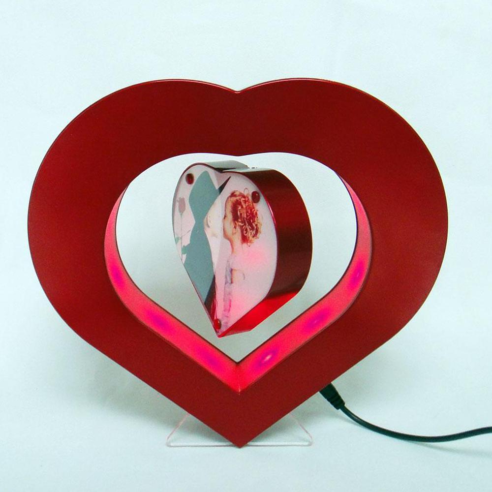The Magnetic Levitation Frame can display your favorite photo with almost 360 degrees. Design the shape of the Perfect Heart to demonstrate the wonders and mysteries of electromagnetism. Once you successfully install it, a floating picture frame can float on its own, displaying the charm of modern technology and gives you a feeling of special effects. Can't play automatically. However, once you install it, it can float in the middle of the stand. Photos will be anti-gravity that floats in the air by itself. Give it a soft rotation and it will spin for a while. Photos can also sit on a stand. It also comes with LED lights, very lively and beautiful especially in the dark. The small gadget can display 2 photos, could be a nice gift for family, friends, leaders, etc.