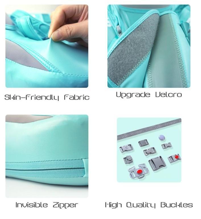 The safety buckle of swim float with soft material. It is not only kept safe for your baby but let baby backstroke or breaststroke with different buckle method. Try it and you will find the favorite way of your baby. This is a lightweight and portable product, our latest swim trainer is the ultimate accessory for you and your little bub.