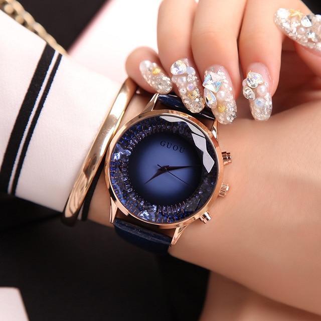 Midnight Blue Luxury Diamond (Synthetic) Genuine Leather Ladies Watch
