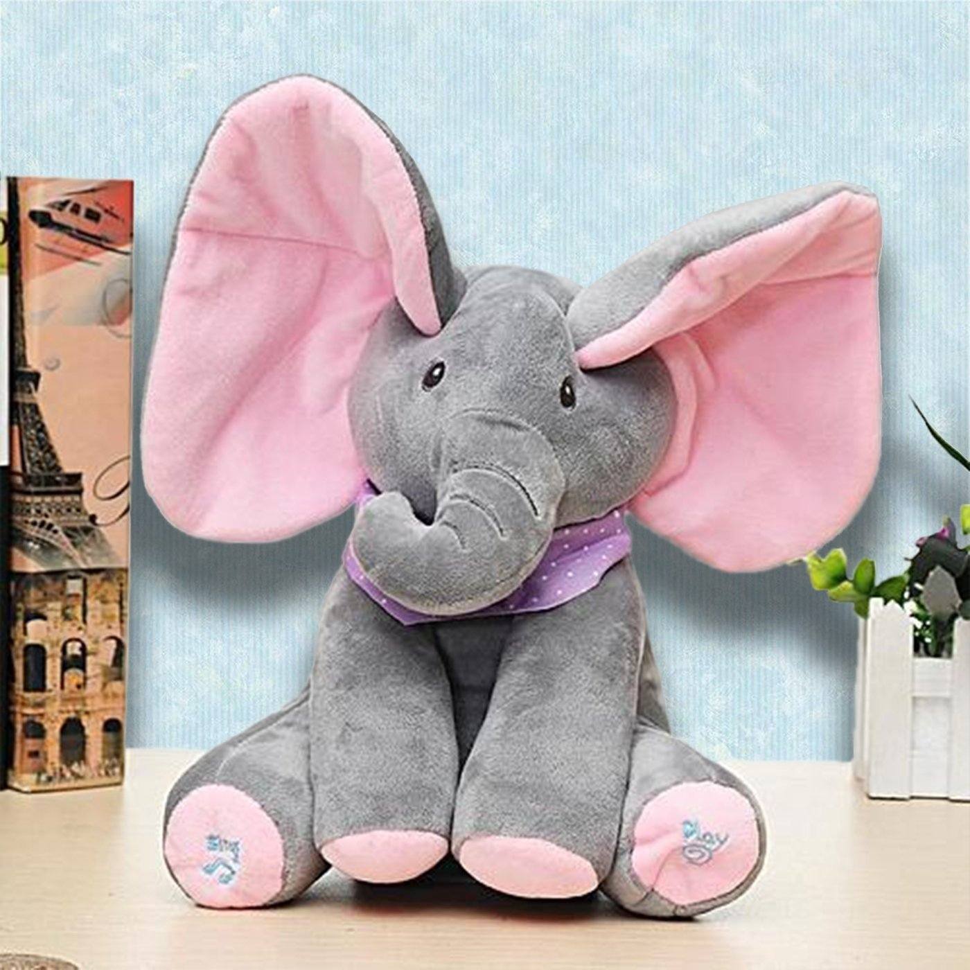 - “Play” lets your child watch the elephant’s ears flap up and down as it plays “Peek-A-Boo” with them. Just listen to their giggles as they play back.