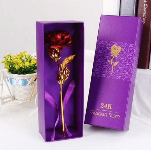 Celebrate love with timeless elegance by gifting the 24K Gold Foil Rose, a beautiful and meaningful gesture perfect for Valentine's Day or any special occasion. This exquisite rose, available in Gold, Purple, Red, and Blue, is plated with golden foil, capturing the beauty and symbolism of a real rose, with the added touch of luxury that will last a lifetime.