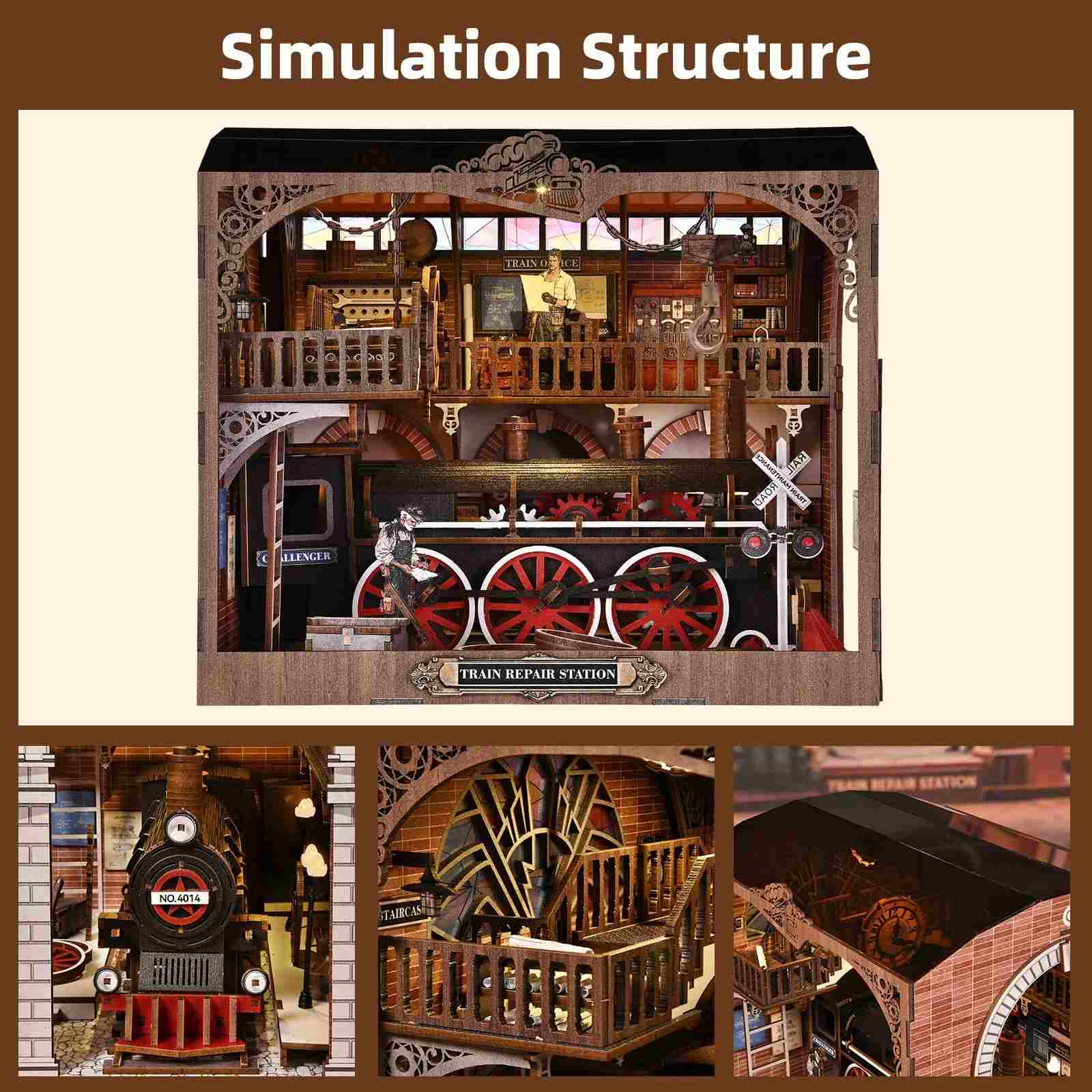 Recreate the spirit of the railway age — one wooden piece at a time. Let your bookshelf tell a story of craftsmanship, nostalgia, and motion with the Train Repair Station DIY Book Nook Kit.