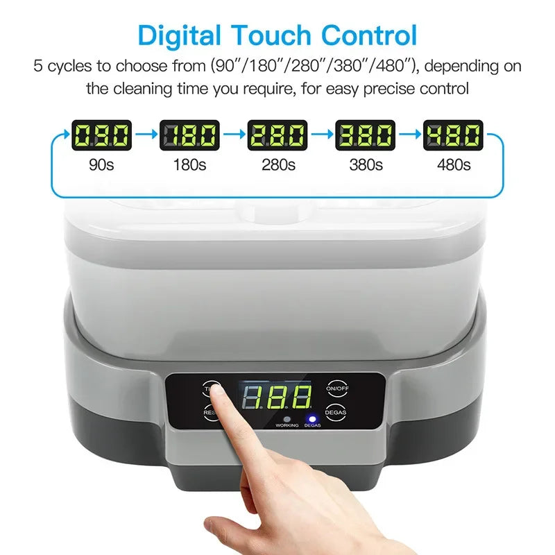 - Digital Touch Control: Choose between 5 cleaning cycles (90s, 180s, 280s, 380s, 480s) for precise control based on your cleaning needs.